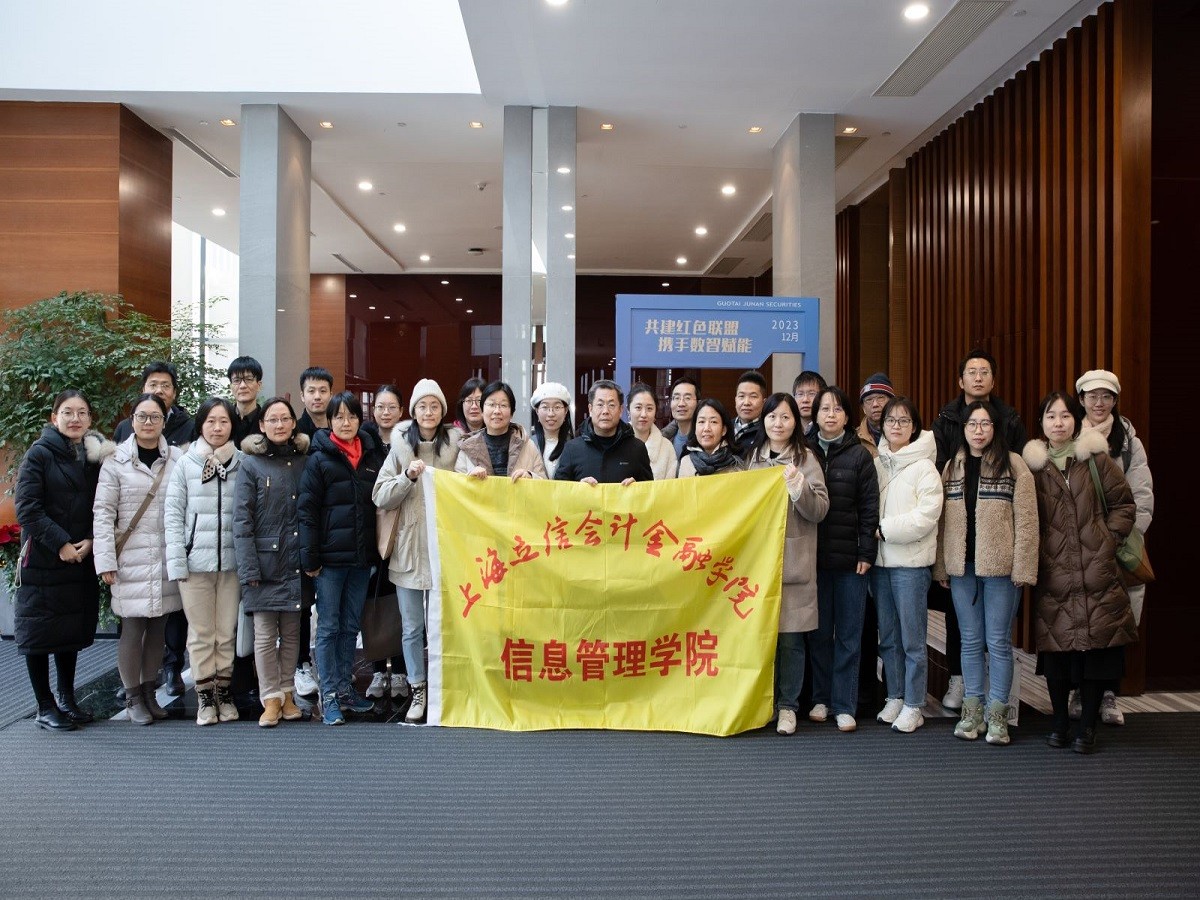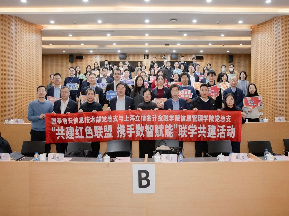 为深入学习贯彻习近平总书记考察上海重要讲话精神和中央金融工作会议精神,全面把握实践要求,以实际行动抓好贯彻落实,12月20日,信息管理学院党总支与国泰君安信息技术部党总支开展“共建红色联盟携手数智赋能”联学共建活动,会议在国泰君安后援中心举行。信息管理学院党总支书记王铂、院长胡乃静,国泰君安证券信息技术部党总支书记、公司首席信息官俞枫,副书记、信息技术部总经理黄韦、党总支委员、信息技术条线综合事务负责人唐珏及双方教职工代表等60余人参加本次活动。