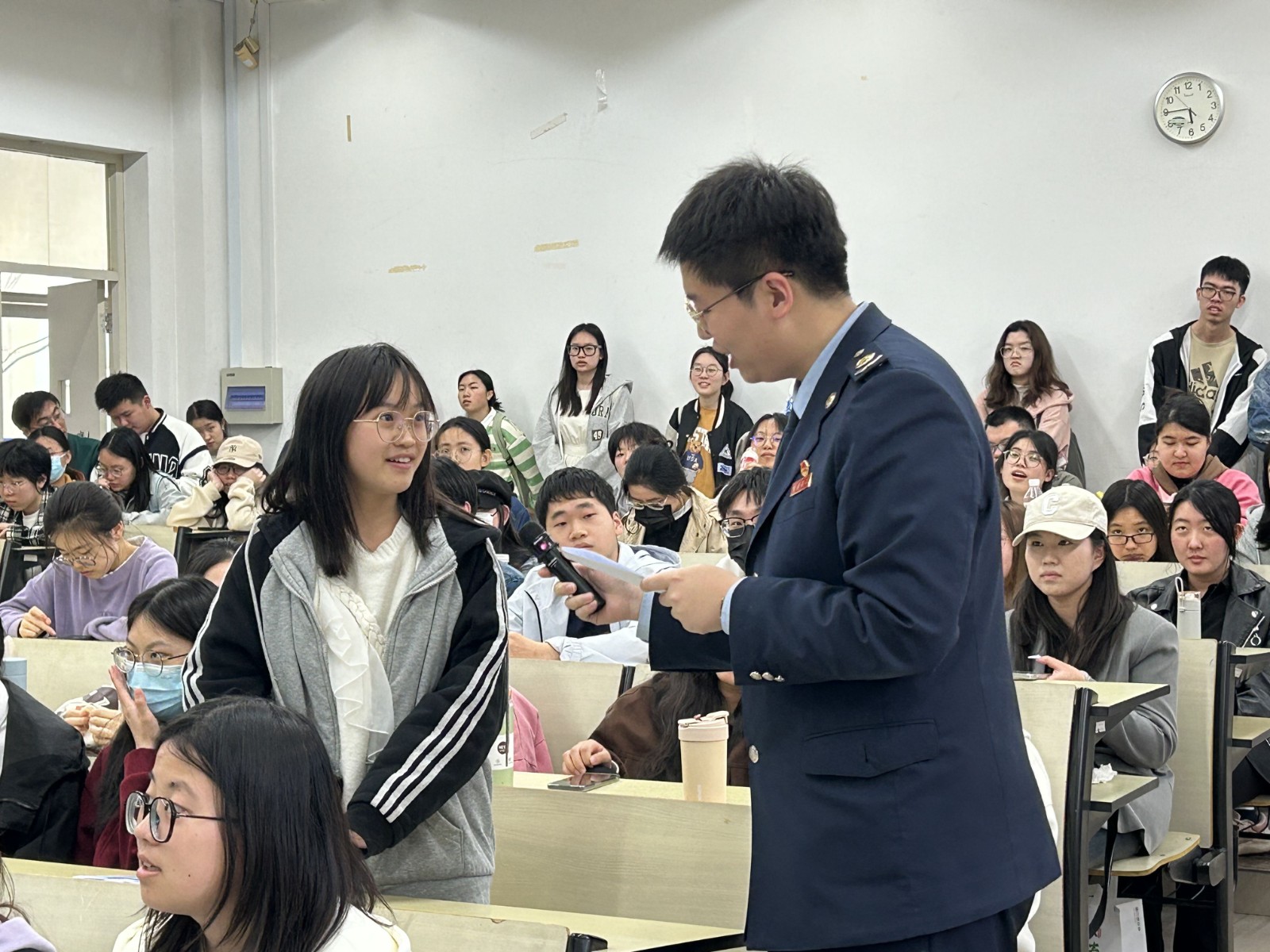 活动围绕个人所得税汇算清缴热点问题做了相应的解答,为学生们提供了关于纳税、减税方面的指引。宣讲人员还向同学们介绍了社会保险费的相关概况,主要讲解了基本养老保险、基本医疗保险、失业保险、工伤保险等基本情况,引导同学们进一步了解目前我国社会保障体系的框架与运行机制。此外,宣讲人员对税务部门的招录及职业规划也做了详细的解读,对同学们在备考过程中关于税务知识的专业考试内容做了针对性指导,受到了现场学生们的高度关注与认可。