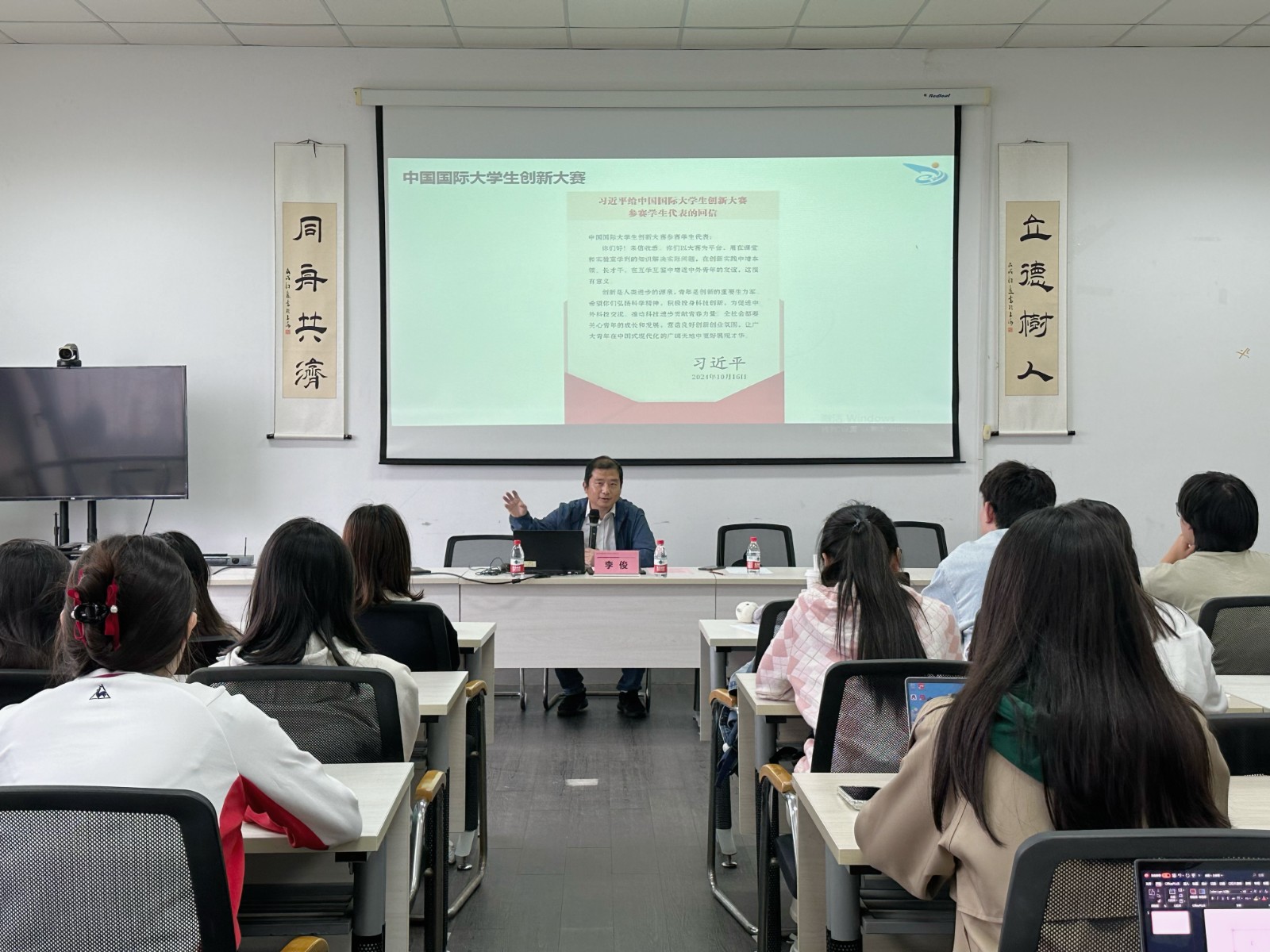 创新创业学院院长、教务处副处长应小陆介绍了学校2024年在该赛事上的成果,详细解读了国家、学校关于该赛事的相关政策,对进一步做好中国国际大学生创新大赛筹备工作提出建议。国际经贸学院党委副书记、副院长饶艳主持培训会,副院长桑瑞聪作总结发言。