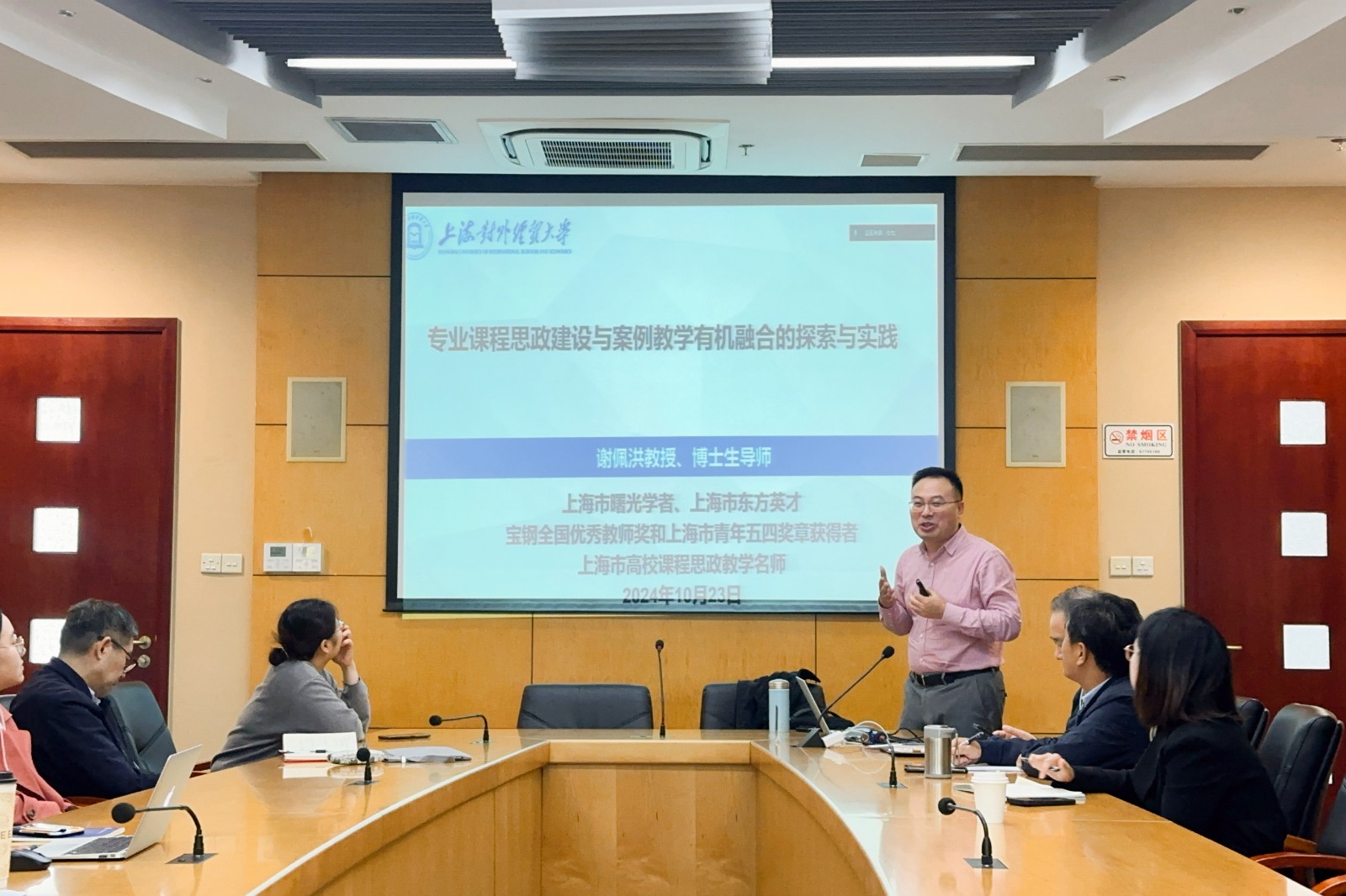 10月24日,财税与公共管理学院举行2024年教学质量月活动启动仪式暨专题学习研讨,特邀上海高校课程思政教学名师、上海对外经贸大学谢佩洪教授开展课程思政专题讲座,财税与公共管理学院副院长彭锻炼、罗月领及党总支书记、副院长(挂职)刘骝出席会议,学院全体教师参会。会议由彭锻炼主持。