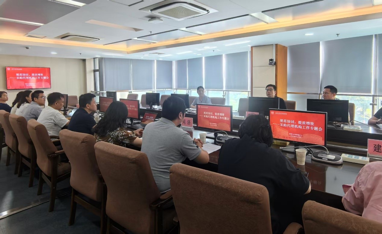 9月25日,采购与合同管理中心组织召开采购代理机构工作专题会议。采购与合同管理中心主任黄寒啸,纪委(监察专员办)纪检监察室相关负责人以及各采购代理机构采购分管领导和项目负责人参加会议。会议由黄寒啸主持。