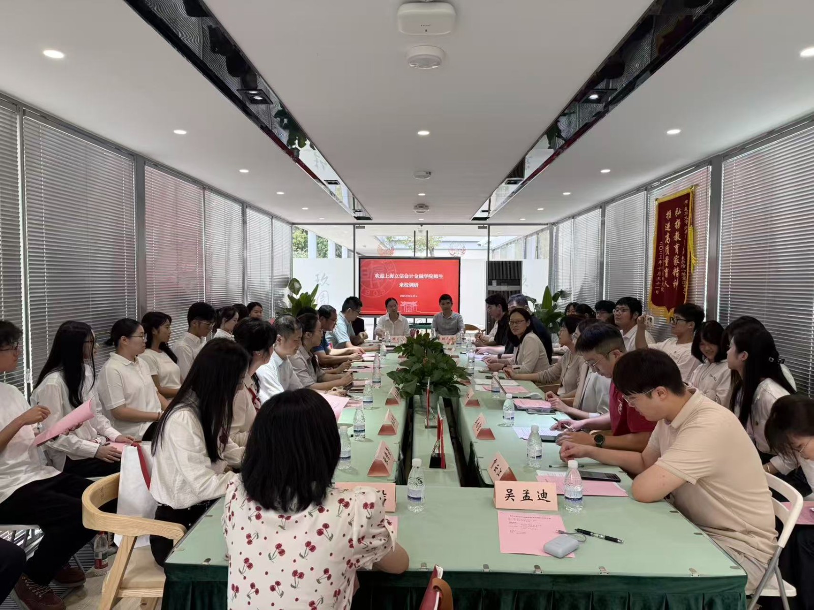 10月15日,党政办公室、党委学生工作部、党委研究生工作部、文博中心、团委、金融学院等单位相关负责人,“新进社”等学生组织骨干成员,“立信·行远”高校—高中推优衔接接续培养学员班学员等一行赴复旦大学开展专题学习调研。双方围绕学生思想政治教育、党建融合创新与大学生理论宣讲品牌建设等议题进行深入交流。