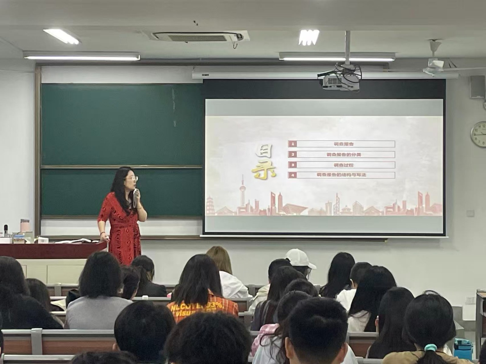 近日,人文艺术学院还举办了教学示范观摩活动,由刘慧主讲“应用文写作”。刘慧以培养高素质应用型人才为目标,通过理论与实践相结合的教学模式,注重提升学生的知识、能力与素养。课程注重将育人理念融入写作技能训练,引导学生掌握应用写作规范,提升综合职业素养。