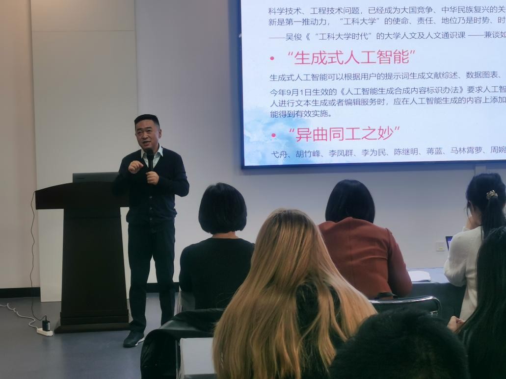 杨青泉以“人类写作的恒量与变量:人工智能背景下高校文学类学科发展趋势展望”为题,从人文视角解读AI与写作、文学的交叉融合,对高校文学类学科如何坚守人文内核、创新人才培养模式、拓展研究方向等提出前瞻性思考。