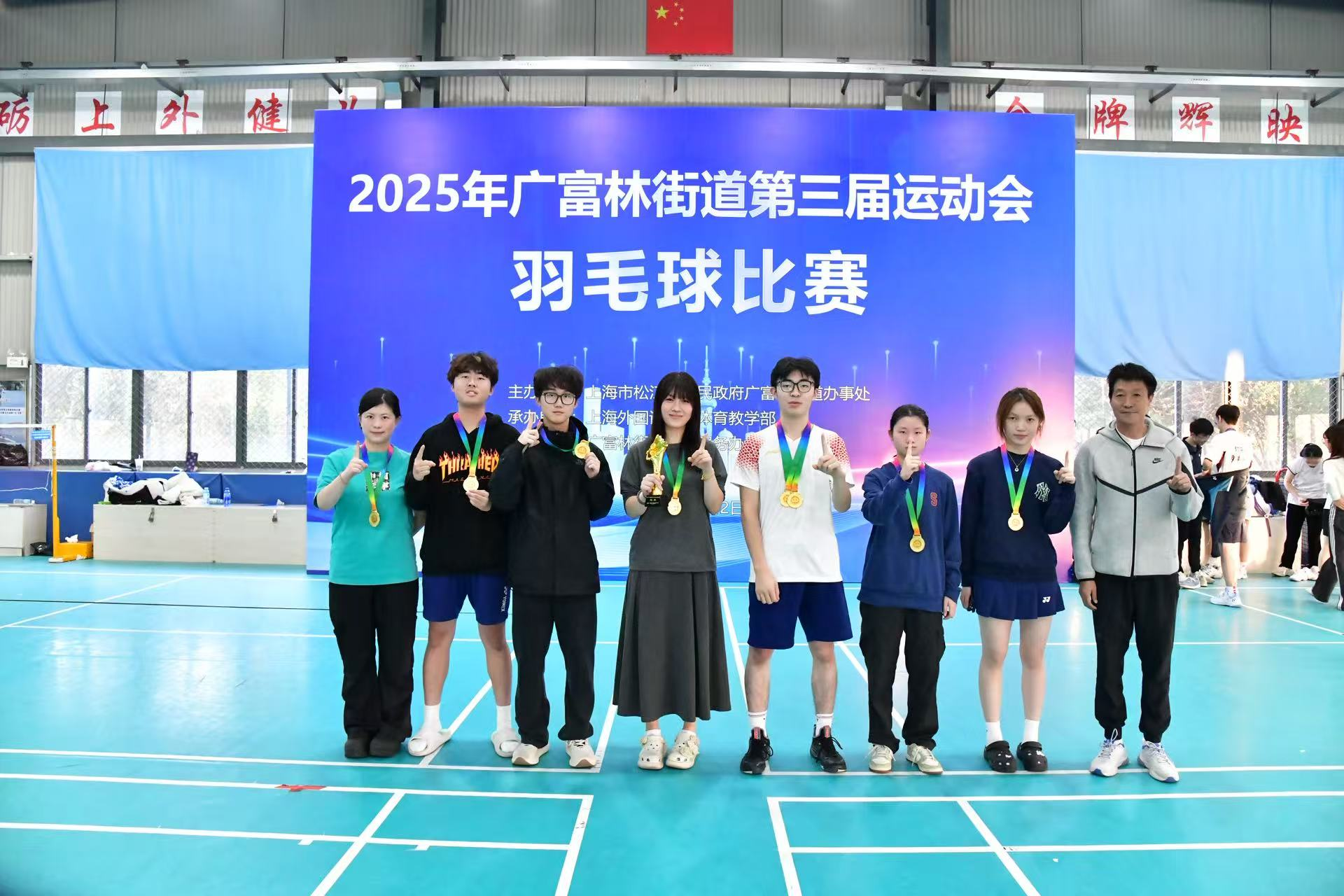 近日,广富林街道第三届运动会羽毛球比赛在上海外国语大学松江校区羽毛球馆落下帷幕。我校学生代表队凭借出色发挥,夺得团体冠军。