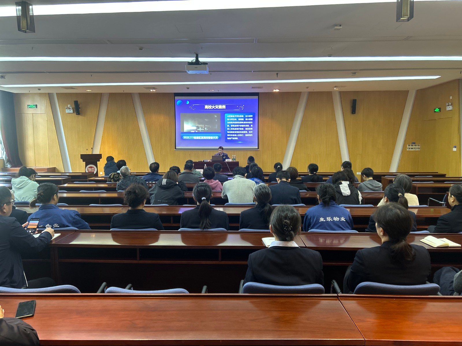 11月10日上午,保卫处特邀上海市松江区消防救援局杨象导在文翔路校区为图书馆、后勤保障处教职员工开展“平安校园 消防护航”高校消防安全专题培训讲座,通过“案例+数据+操作图”的直观展示,为教职工压实安全责任、提升应急水平提供专业指导。保卫处开展消防灭火演练与灭火栓使用教学,讲解了干粉灭火器“提、拔、握、压”四步操作法以及消防水带连接、灭火栓开启等要点,在专业人员指导下,师生代表轮流上前实操,使安全技能从“纸上”落到“手上”。
