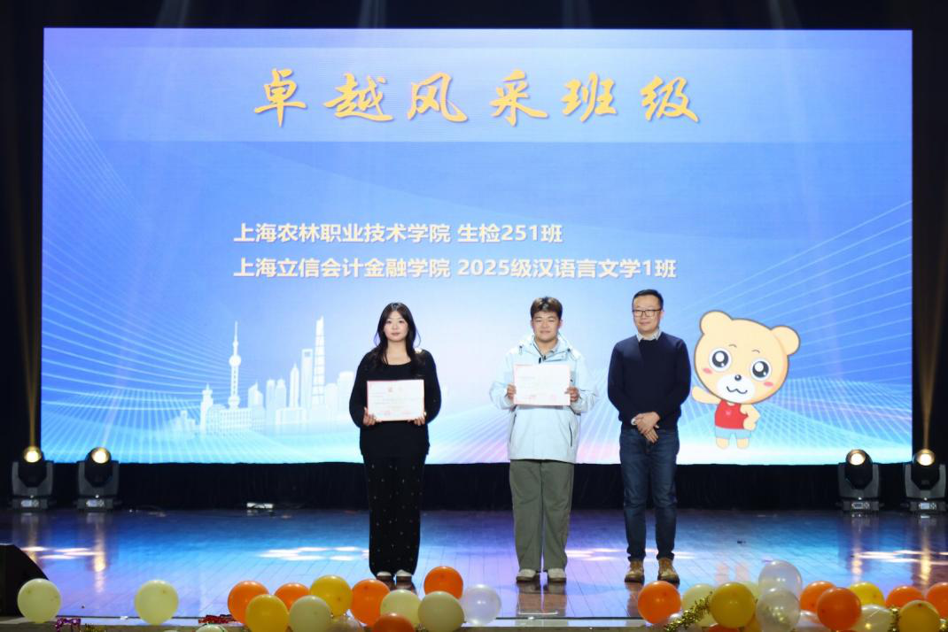 12月6日,由中共上海市教育卫生工作委员会、上海市教育委员会指导,上海市教育系统网络文化发展研究中心与我校联合主办,易班网支持的“‘易’路同行 展青春风采”2025年上海高校易班新生班级风采大赛决赛在文翔路校区举行。经过激烈角逐,我校2025级汉语言文学1班凭借鲜明的班级特色、深厚的人文底蕴与创新的展示形式,荣获“卓越风采班级”奖,辅导员邓钰琦获“最佳易班指导老师”称号。