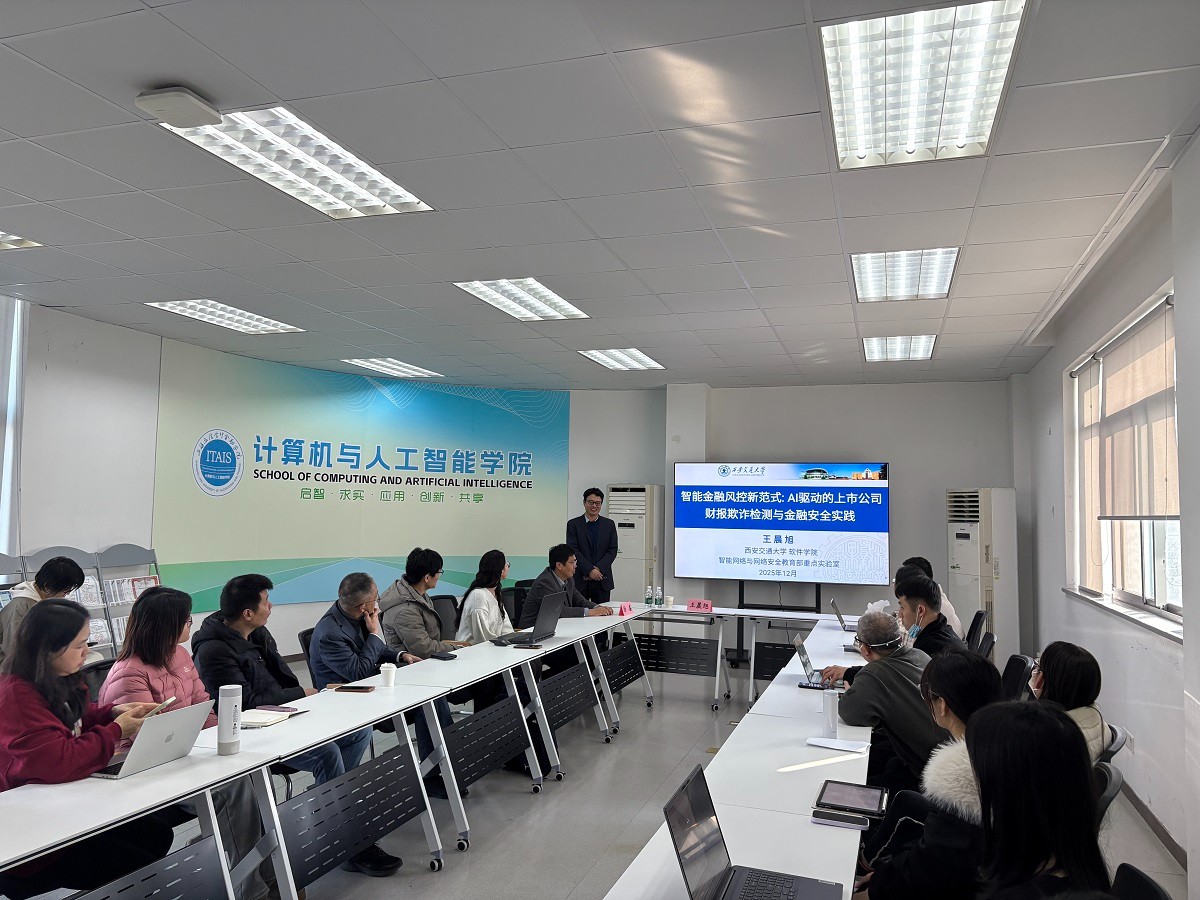 12月19日,计算机与人工智能学院“智信讲堂”第一期在上川路校区举行。本期讲堂聚焦“智能金融风控新范式: AI驱动的上市公司财报欺诈检测与金融安全实践”,邀请西安交通大学软件学院副院长、国家级青年人才计划入选者王晨旭教授担任主讲。