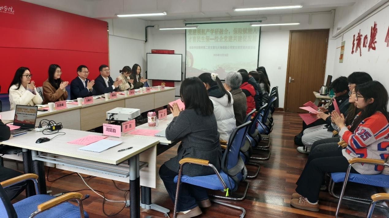 12月18日,保险学院教师第二党支部与中国大地保险公司营业部党支部举行党建共建活动。学院领导班子成员、企业骨干及优秀校友齐聚一堂,共话党建创新,共商合作新篇。