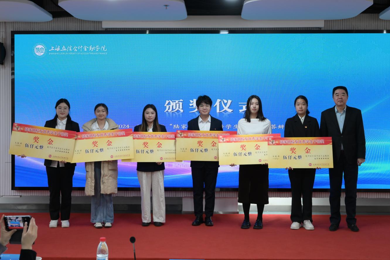 经个人陈述、现场答辩和综合评审,卢逸涵、屈宏伟、朱莉、刘育辛、陈昕羽桐、刘雅宁等六位同学荣获本学年“陆家明校友优秀学生干部奖”,刘文靖、李博烨、张奕恒、李祖顺、官星宇、戴文婷等六位同学获提名奖。陆家明为获奖同学颁奖并寄语,勉励大家勤奋学习、担当奉献,努力成长为栋梁之才。