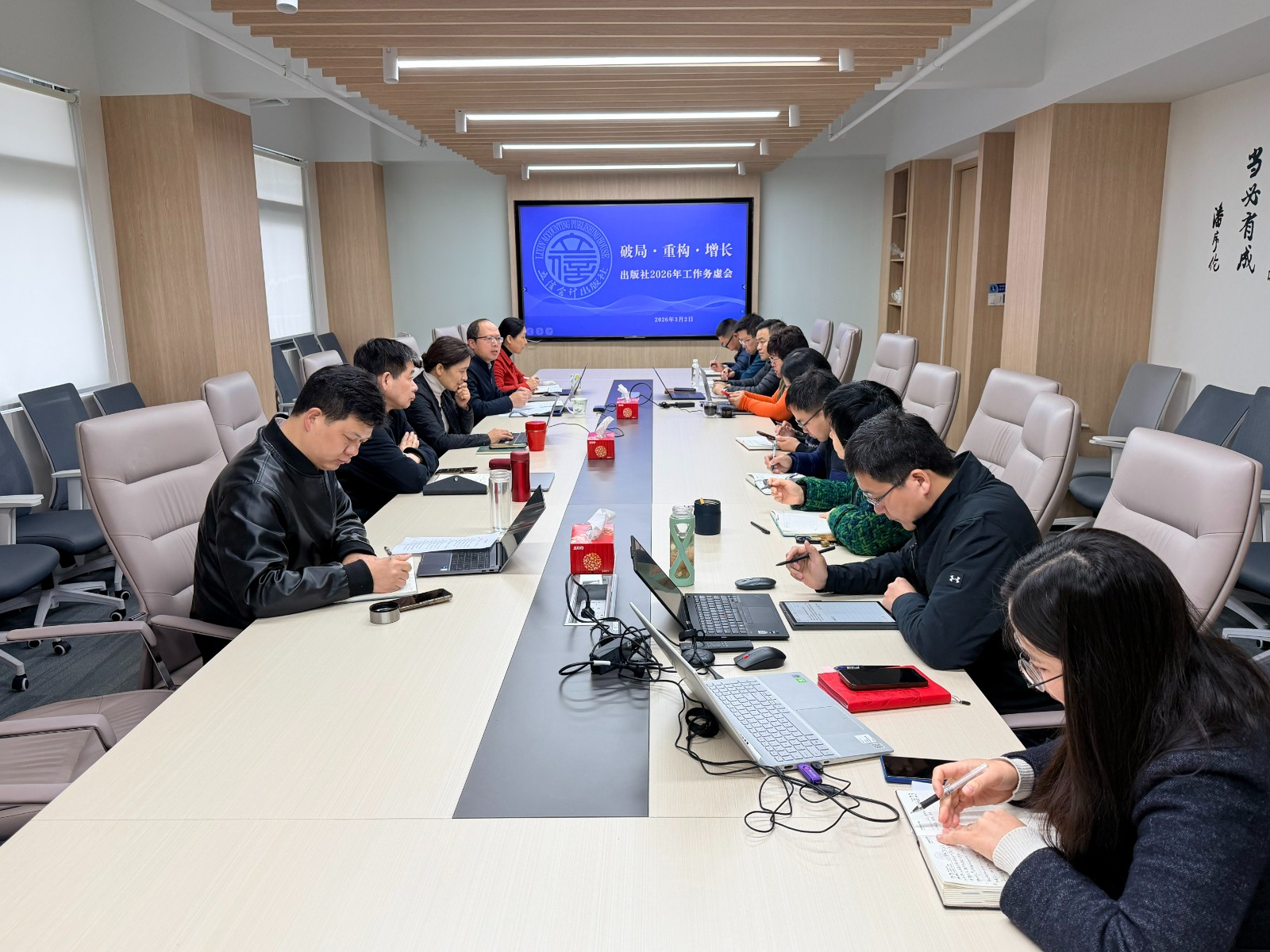 3月2日,出版社召开2026年工作务虚会,会议以“破局·重构·增长——在行业变局中锻造立信出版新未来”为主题,社领导班子成员与全体中层干部出席。会议由社长牛培源主持。
