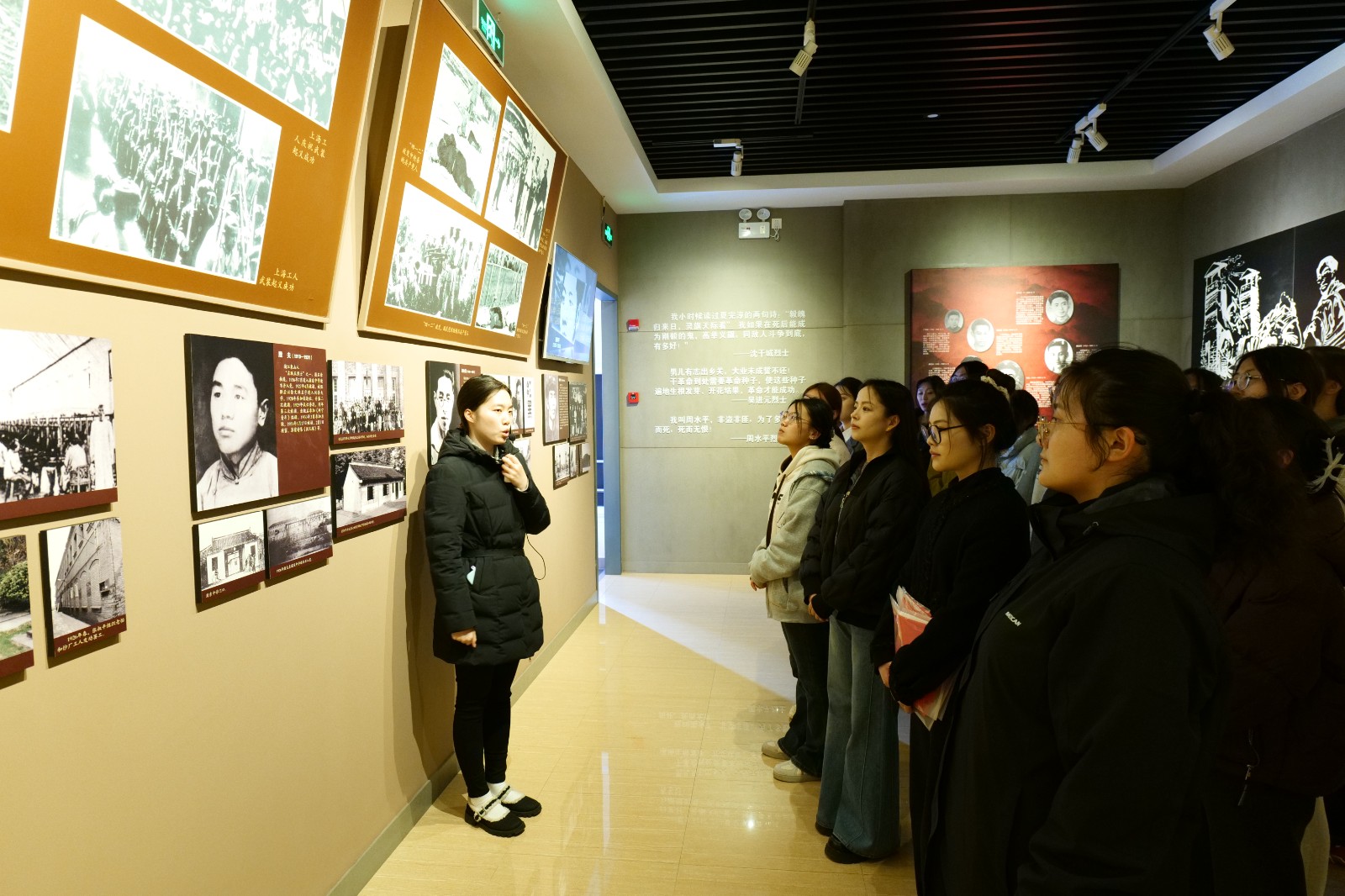 讲解员讲述革命先烈为信仰坚守、为家国牺牲的峥嵘往事,同学们神情肃穆、静心聆听,感悟先烈的赤胆忠诚与崇高气节。步入纪念馆,同学们凝视一件件承载历史记忆的展品,在沉浸式学习中坚定传承红色基因、勇担时代使命的信念。