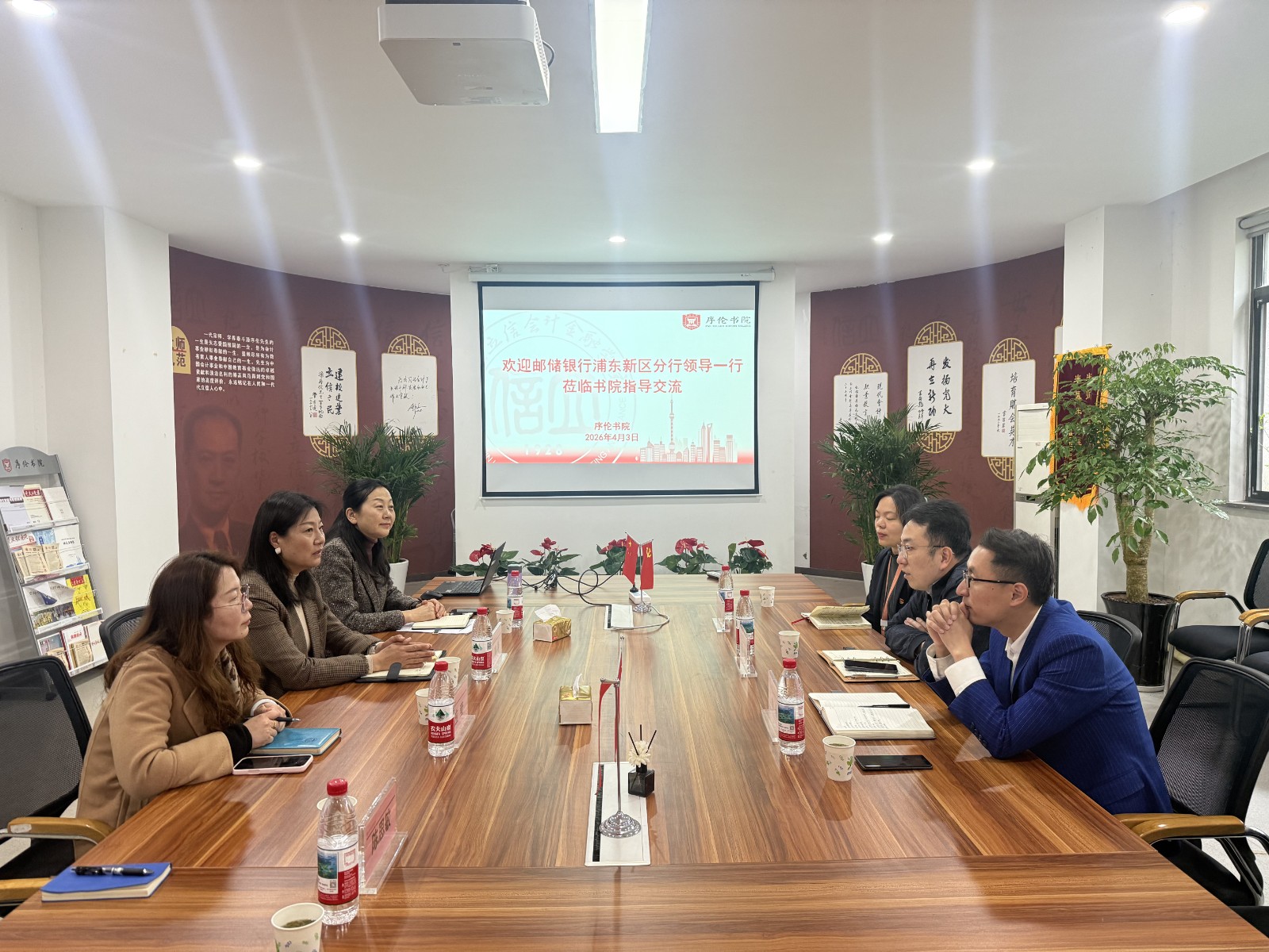 4月3日,邮储银行浦东新区分行个人金融部总经理张迪、高级主管俞雍、财富顾问朱鸿燕一行来访序伦书院。序伦书院党总支副书记、副院长(主持工作)饶艳等接待邮储银行一行。