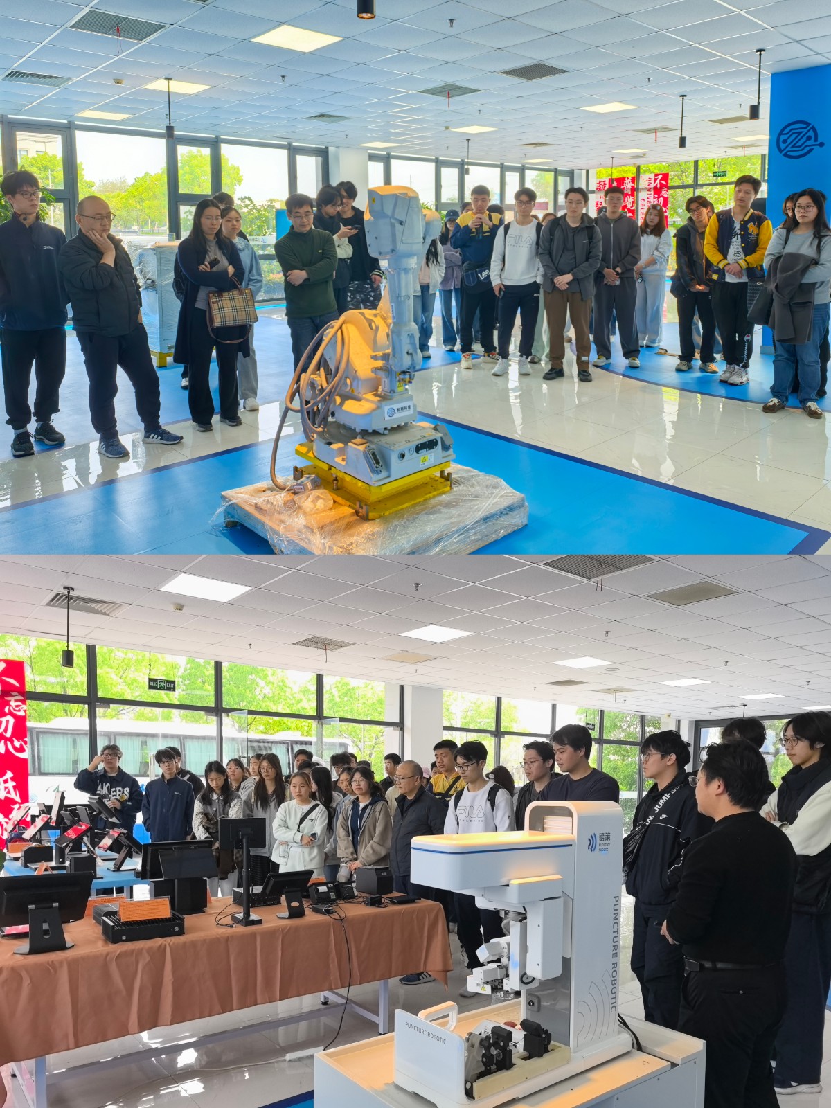 史威与马明普还带领学生走进园区内多家重点人工智能与机器人企业实地参观。同学们对人工智能在区域生态构建、教育赋能、企业数字化转型等方面的实际应用与产业落地有了更加直观和深入的认识。