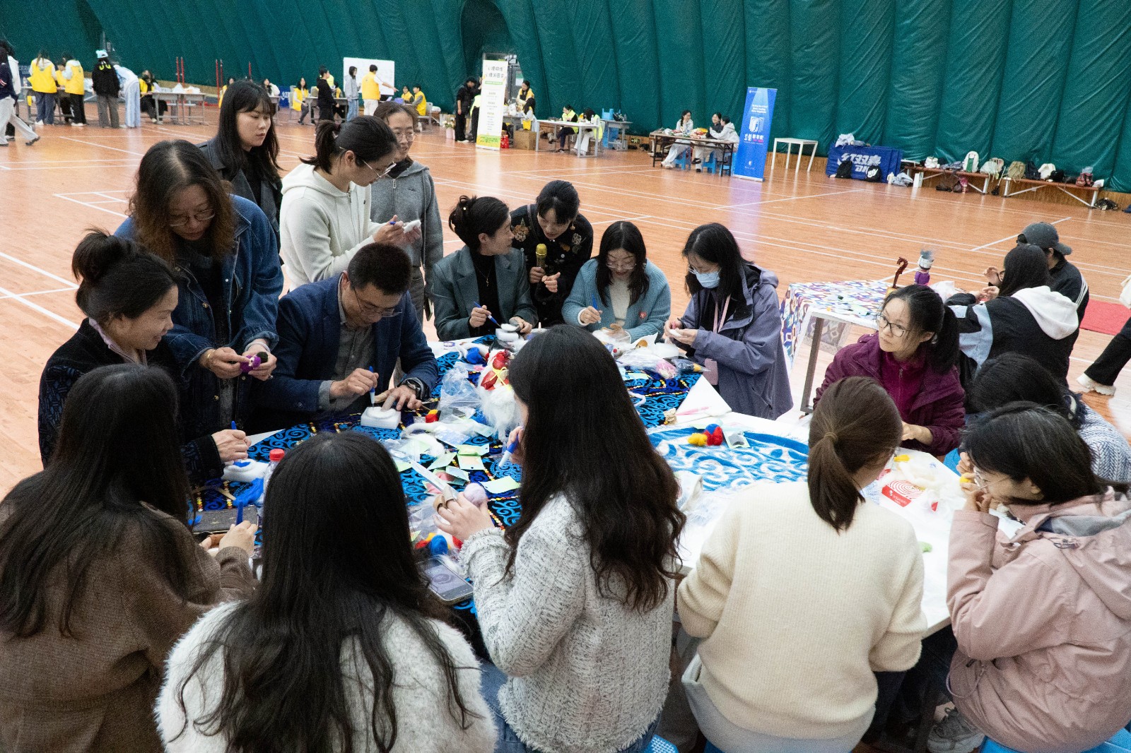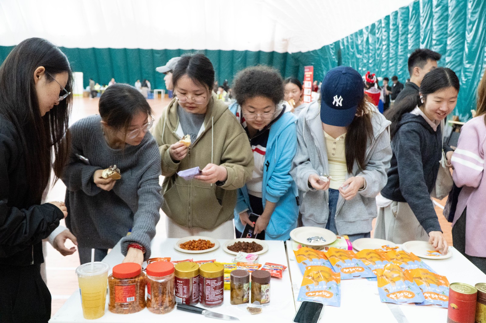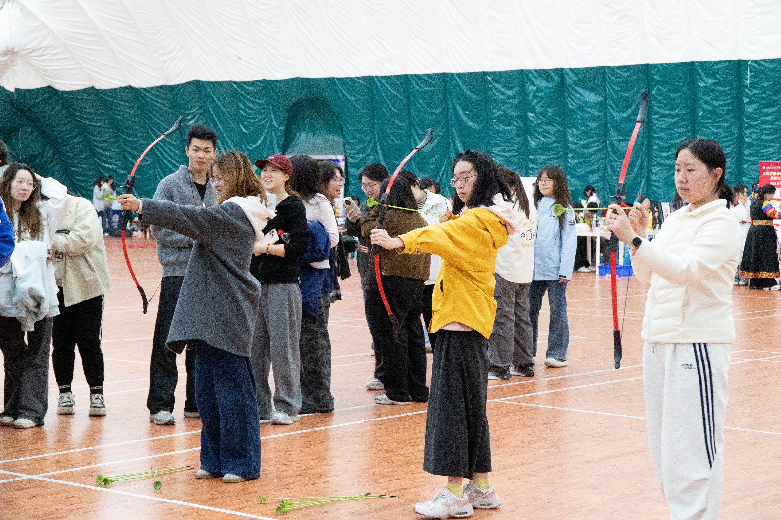 本次活动以“百花映春三月三,同心筑梦十五五”为主题,分为民族美食品鉴、民族传统游戏、民族文化鉴赏、民族服饰展示、心理主题活动五大板块。民族美食品鉴区香气四溢,牛肉干、糌粑、奶酪包、苦荞粑粑、三道茶等特色美食集中亮相,展现各民族饮食文化的独特魅力。传统游戏区热闹非凡,竹竿舞节奏欢快、抛绣球轻盈灵动、投壶沉稳有趣、射箭张弛有度,师生们在互动体验中感受传统文化的生机与活力。民族文化鉴赏区内容丰富,树皮画、毡绣等非遗项目与藏文书法、飞花令等活动交相辉映,让师生近距离领略中华优秀传统文化的深厚底蕴。民族服饰展示与竞猜环节精彩纷呈,绚丽多彩的传统服饰成为流动的文化名片,将现场气氛推向高潮。心理主题活动区,情绪比拟挑战、优势寻宝、韧性拼图等互动游戏让同学们在文化体验中认识自我、调适情绪、提升心理韧性,在润物无声中实现价值引领与心灵滋养的有机统一。
