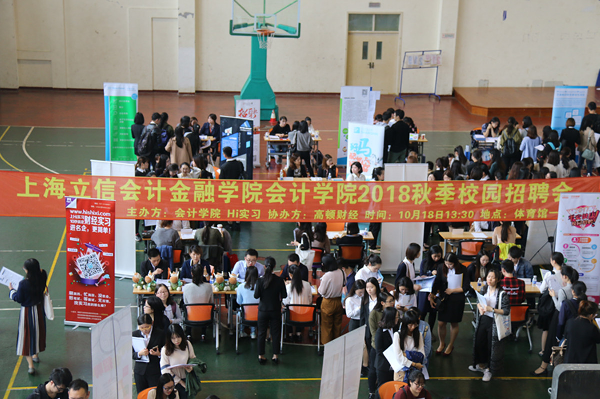10月18日,会计学院在松江校区体育馆举行2018届毕业生专场招聘会,1300多名学生参加此次招聘会。