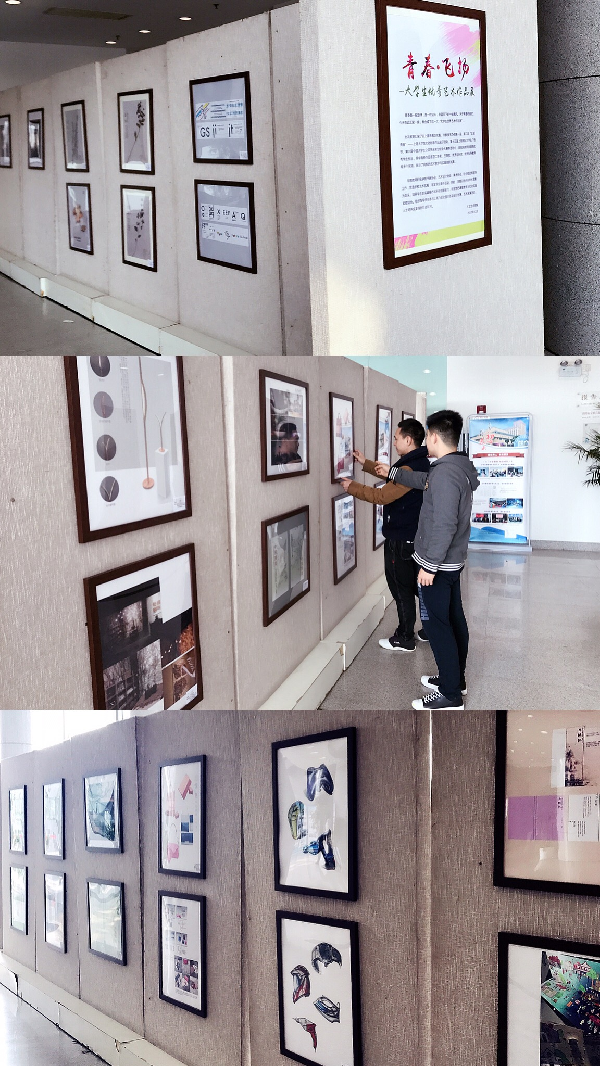 近日,人文艺术学院大学生优秀艺术作品展在学校行政楼一楼大厅举办,展览展出学生优秀艺术作品近30幅,涵盖了海报设计、标识设计、产品设计、手绘效果图等多种艺术形式,展示了人文艺术学院的艺术教学与实践创新成果。