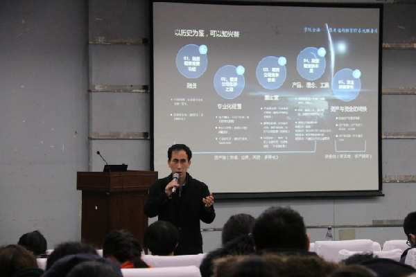 12月20日下午,由财税与公共管理学院举办的大学生人文讲坛“融资租赁-大学生就业的新选择”在松江校区长乐楼举行。上海晋安资产管理有限公司王俊鹏主讲,来自全校的150余名学生聆听了报告。