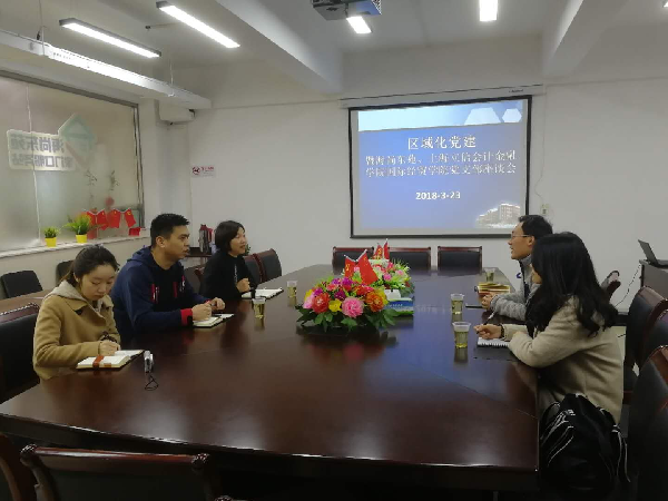 为进一步深化校地党建共建,3月23日,国际经贸学院党总支书记程振强、兼职组织员赵凤欣、2016级学生党支部书记程杨到海尚东苑参加党建共建座谈。海尚东苑党支部书记曹烨,党支部委员高鑫磊、李晓蕾参加此次座谈会。