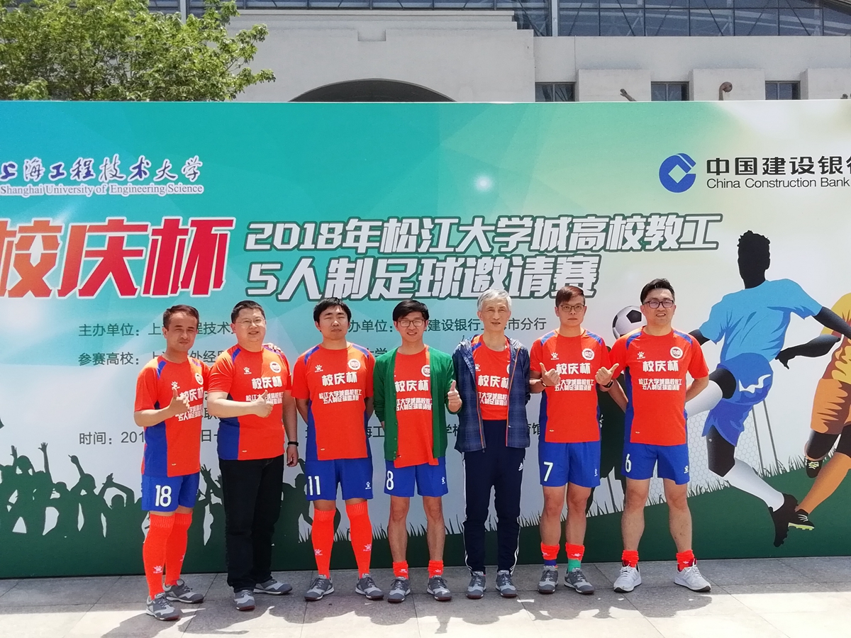 5月3日,2018松江大学城高校教工5人制足球邀请赛在上海工程技术大学松江校区体育馆拉开了帷幕,来自松江的8所高校教职工足球队参与了此次比赛,上海市教育工会副主席吉启华出席了开幕式并宣布比赛开始。我校教职工足球队参赛。