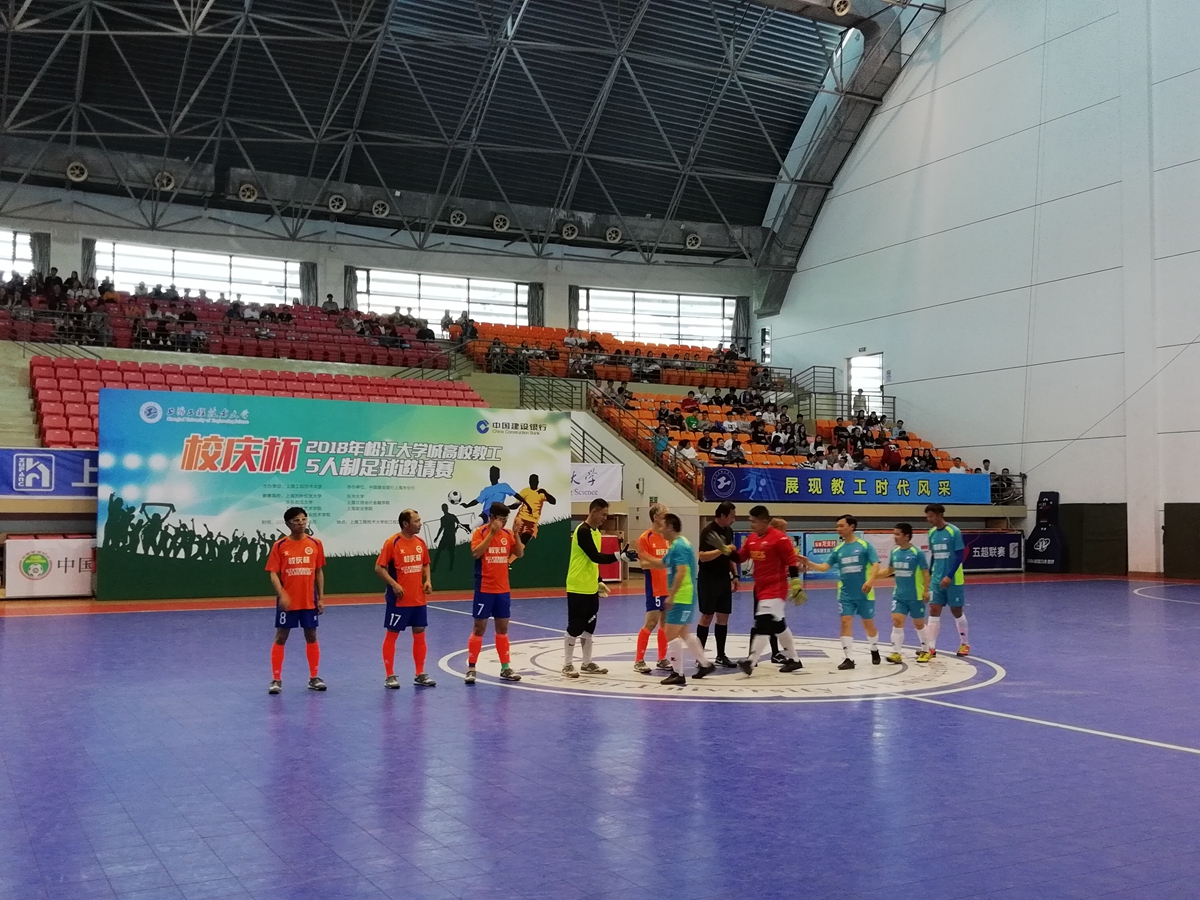 5月3日,2018松江大学城高校教工5人制足球邀请赛在上海工程技术大学松江校区体育馆拉开了帷幕,来自松江的8所高校教职工足球队参与了此次比赛,上海市教育工会副主席吉启华出席了开幕式并宣布比赛开始。我校教职工足球队参赛。 揭幕战中,面对主场作战的上海工程技术大学队,我校教工足球队全体队员发扬勇于拼搏、团结协作的精神,凭着扎实的基本功和昂扬的斗志,在场上敢打敢拼,赢得了全场观众的掌声与喝彩,展现出我校教职工积极向上的精神风貌。