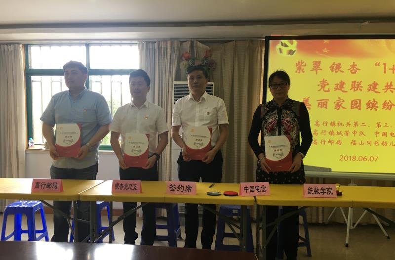为了更好地落实十九大精神,加强基层党组织建设,促进区域化党建联建,6月7日,统计与数学学院党总支副书记陈秋兰带领团队参与了上午在高行镇紫翠居委举行的“1+5+X”党建联建签约活动。统计与数学学院党总支与高行镇银杏居委党总支、紫翠居委党总支签署了党建联建协议书。会上,各单位介绍了一下本单位的党建情况,并就党建工作合作洽谈了细节。