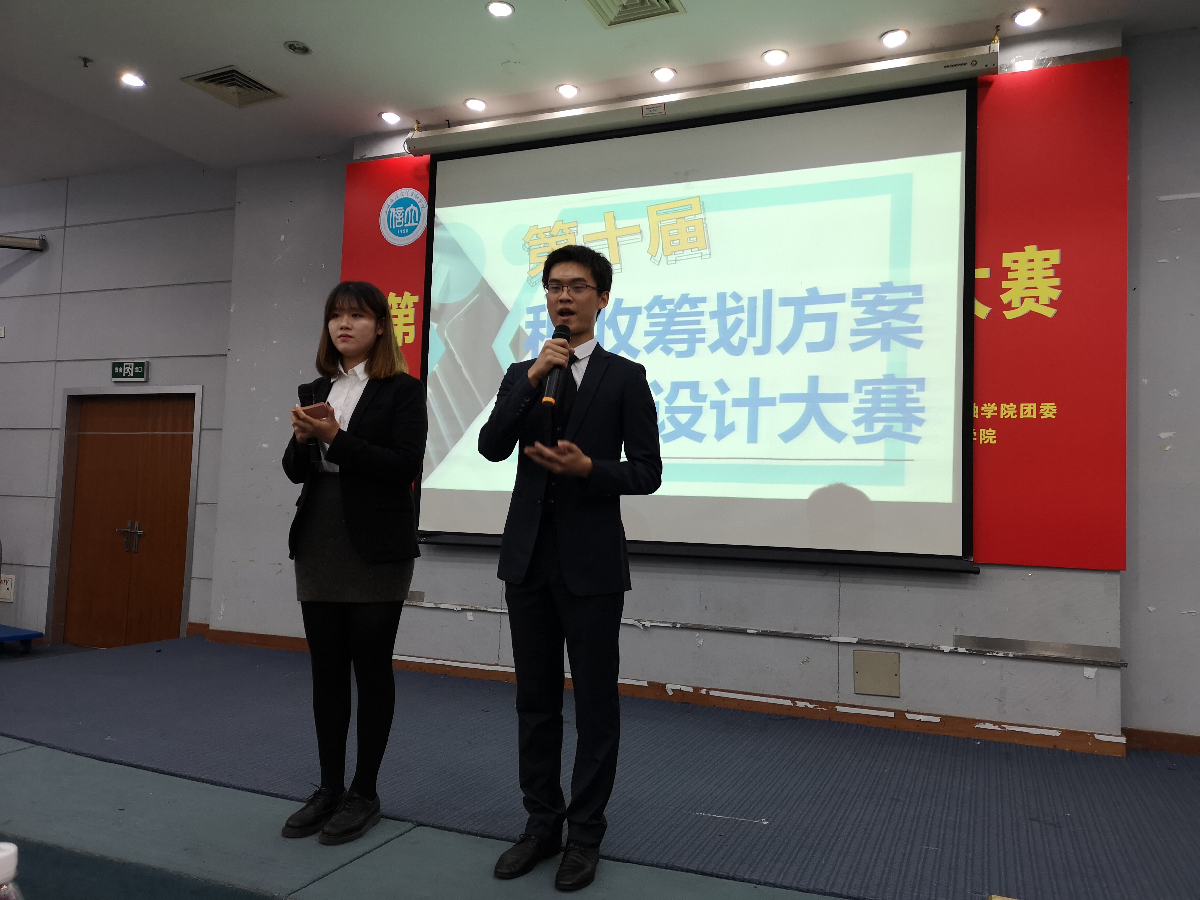11月14日下午,由校团委、财税与公共管理学院主办,财税学社承办的第十届税收筹划方案设计大赛在长乐楼报告厅举行。财税与公共管理学院党总支副书记、副院长王亭,上海海关学院税务教研室刘洋,财公管学院税务教研室主任王瑶、赵海益、于佳曦以及辅导员王洁出席了本次比赛。