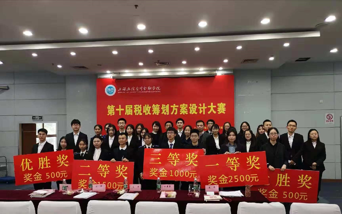第十届税收筹划方案设计大赛共有100多支来自两校区不同学院以及上海海关学院的参赛队伍参赛。决赛阶段,8组选手逐组就万安房地产集团公司的一普通标准住宅项目为题从方案计算、涉税风险等方面,进行税收筹划方案展示分析及现场答辩,最终我校财税与公共管理学院的李崟小组荣获一等奖,胡正旺、王香茗小组获得二等奖,向星桦、徐淑洹、方孟殊小组获得三等奖,王宇、李周欣小组获得优胜奖。