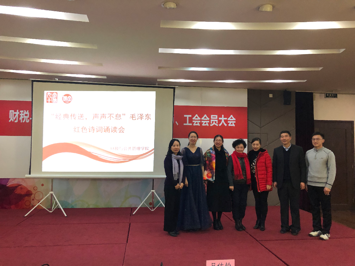 为重温党的光辉历程,展现师生良好的精神风貌和历史传承,财税与公共管理学院党总支于1月11日,在松江校区举办了“经典传送,声声不息”毛泽东诗词诵读会,此次诵读会获2018年度校主题党建立项。财税与公共管理学院党总支书记闫锐,院长、党总支副书记杨光焰等领导班子成员出席并参加了本次比赛。