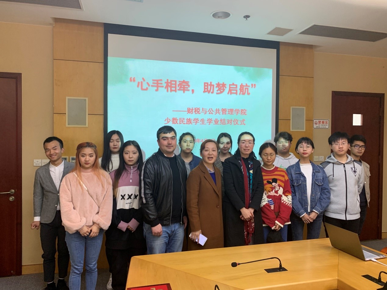 4月3日下午,财税与公共管理学院”心手相牵·助梦启航”少数民族学生学业结对仪式在松江校区举行。学院党总支副书记王亭,学生处苏勤、阿布力克木·阿布拉,部分存在学业困难问题的少数民族学生及其结对辅导同学出席。会议由学院负责少数民族学生工作的肖景蓉主持。