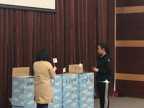 宣讲会上,我校垃圾分类宣讲团的学生代表为同学们解读了《上海市生活垃圾分类管理条例》的相关规定,鼓励同学们知法学法,遵守垃圾分类法律。垃圾分类PPT和小视频生动形象地向同学们展示了垃圾分类的重要性和意义,有利于同学们了解了垃圾分类的具体要求和做法。有奖问答环节,环保志愿者DIY制作的分类垃圾桶将同学们带入了实战操作情景,同学们纷纷参与垃圾分类投放,在现场老师的指导下,对常见及易混淆的垃圾种类有了更清楚的了解。