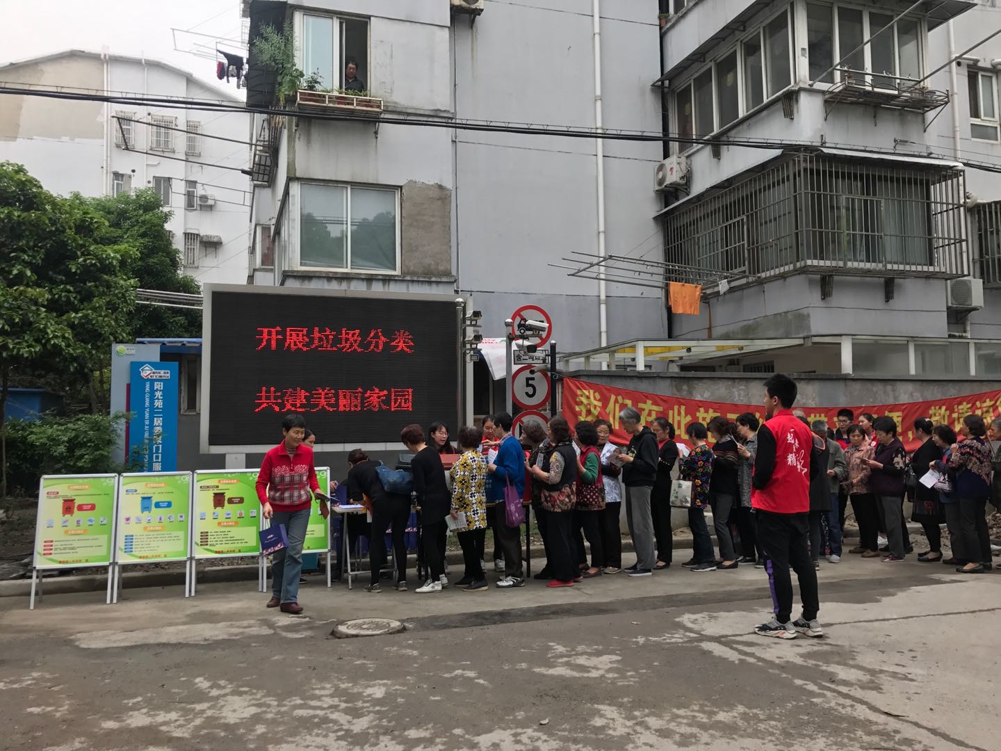 近日,国际经贸学院在阳光苑社区举办了以垃圾分类政策宣传为主题的志愿活动。阳光苑社区居委会相关负责人、阳光苑部分居民参与此次活动。