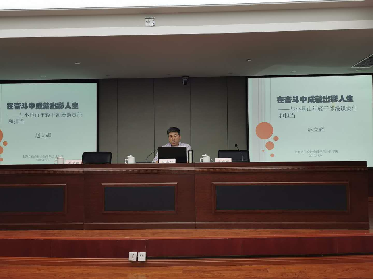 5月24日下午,会计学院党委书记赵立辉为小昆山镇青年后备干部以及会计学院团员代表等六十余人带来了一场题为《在奋斗中成就出彩人生》的思政课。