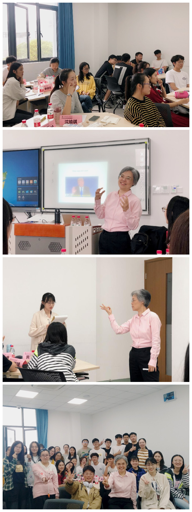 本次授课,通过小组讨论、两人互换故事、个人上台演讲等方式展开。叶慧琍用独具特色的讲课风格、丰富的人生阅历及国际视野带动同学融入课堂,促使学生积极参与,打破传统的教学模式,一改传统课堂的严肃面貌,魅力十足,吸引学生主动学习探究与展示。课上学生积极参与,紧跟专家授课节奏,主动上台展示,虚心接受专家意见。提问环节多名同学纷纷举手发问。本次专家授课反响热烈,骨干学生表示通过本次课程无论对演讲技巧还是为人之道,都有新的认识。