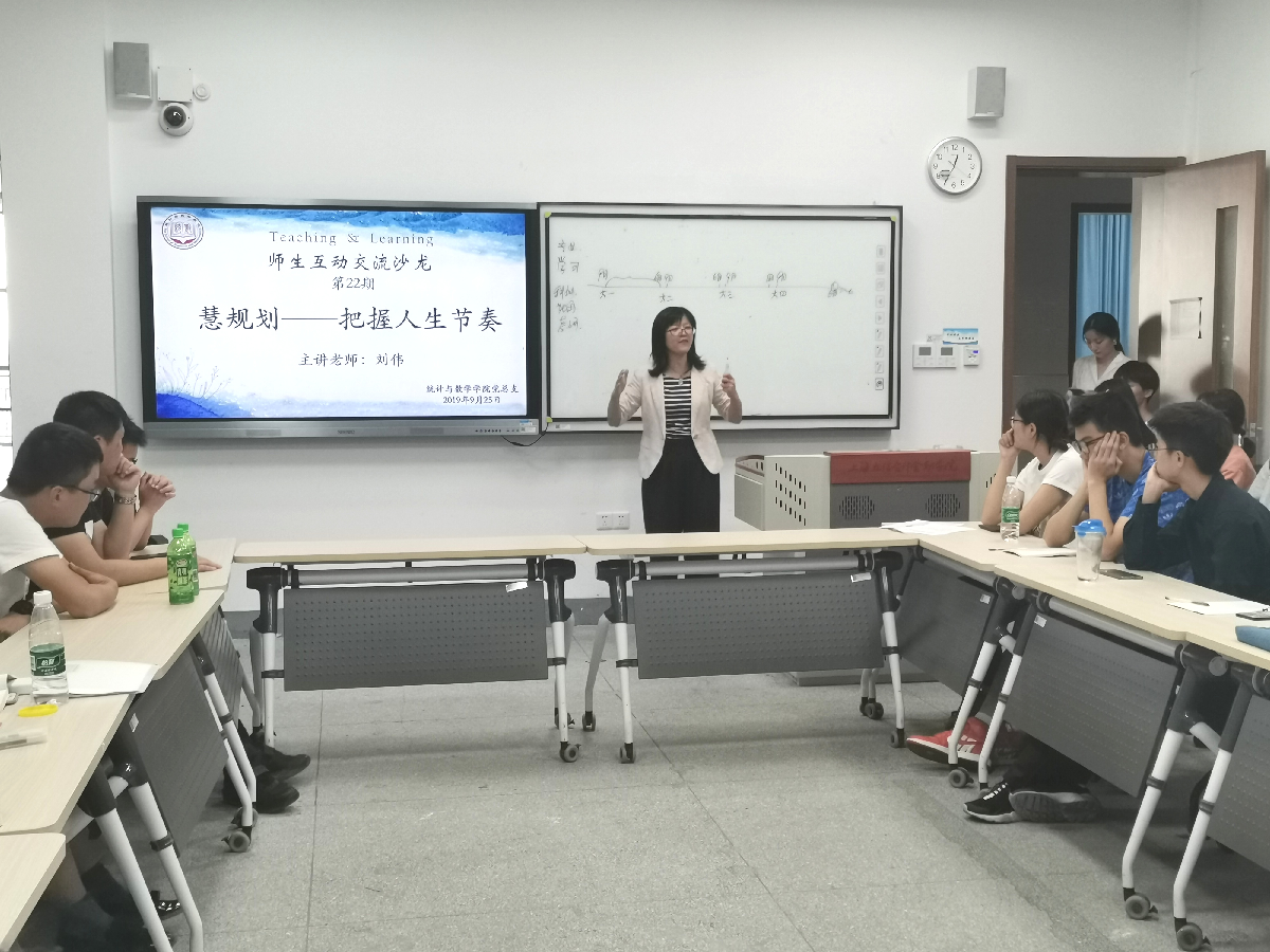 据悉,Teaching & Learning师生互动交流沙龙是统计与数学学院的特色项目,至今已开展了22期。本着以学生成长发展为本的理念,党员教师志愿为学生开展互动交流沙龙,就理想信念、专业认知、学习方法、学科竞赛、发展规划、创新创业、出国、考研等为学生所关心、所困惑、所迷茫的诸多问题上进行近距离、深度性的答疑解惑,构建党员师生“教与学”共同体,深入推进“两学一做”。
