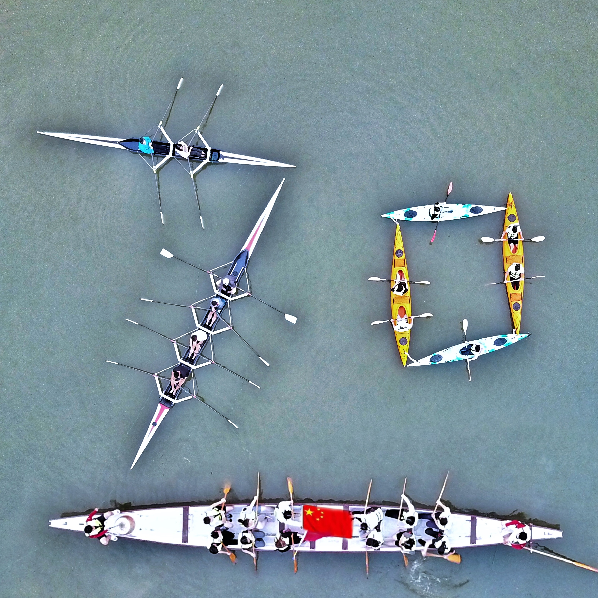 9月30日下午,上海立信会计金融学院水上运动俱乐部成员在校内河道上拍摄献礼新中国70华诞的视频,用赛艇、皮划艇、龙舟拼出“70”方队,表达了对新中国70华诞的深情祝福。