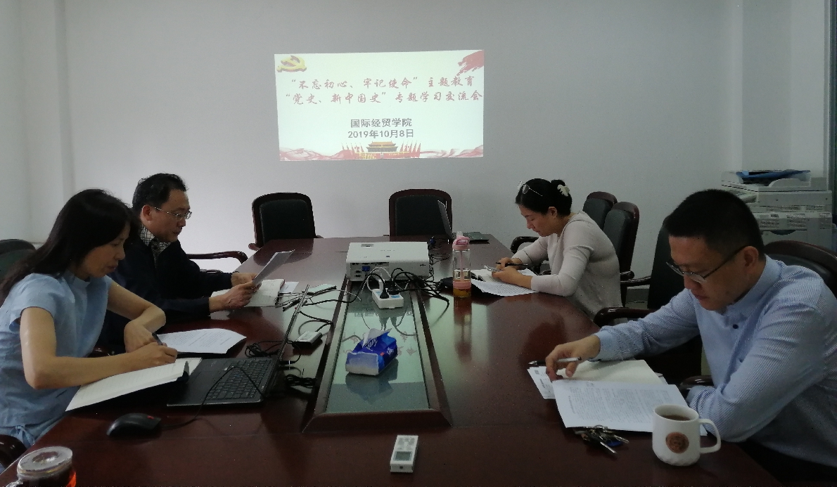 通过学党史、新中国史,国际经贸学院领导班子成员进一步提高了政治站位,树牢了“四个意识”,坚定了“四个自信”。