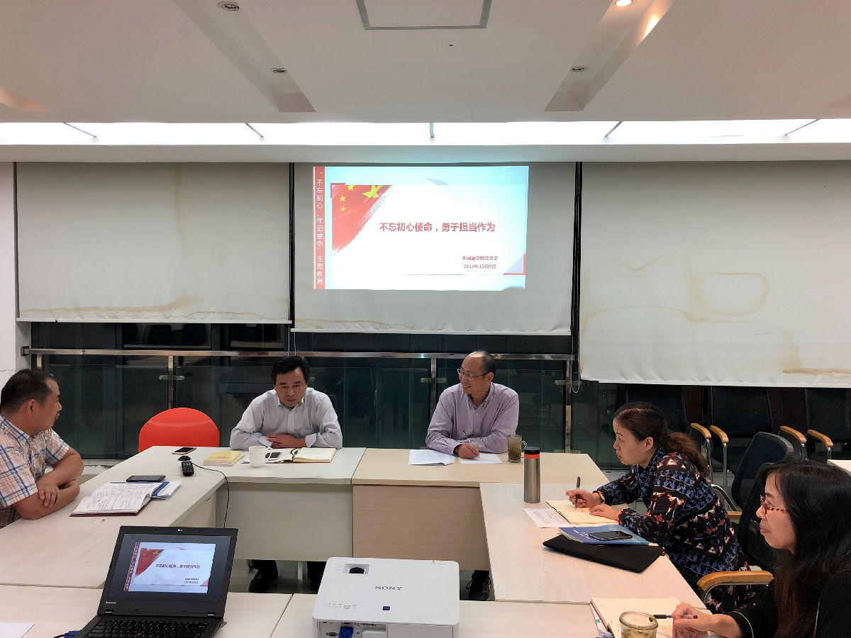10月9日,外国语学院党政领导班子举行“不忘初心、牢记使命”主题教育第二次集中学习研讨,研讨主题为“不忘初心使命,勇于担当作为”。学院党总支副书记、主持行政工作副院长邵军航作主题发言,其他班子成员作交流发言。