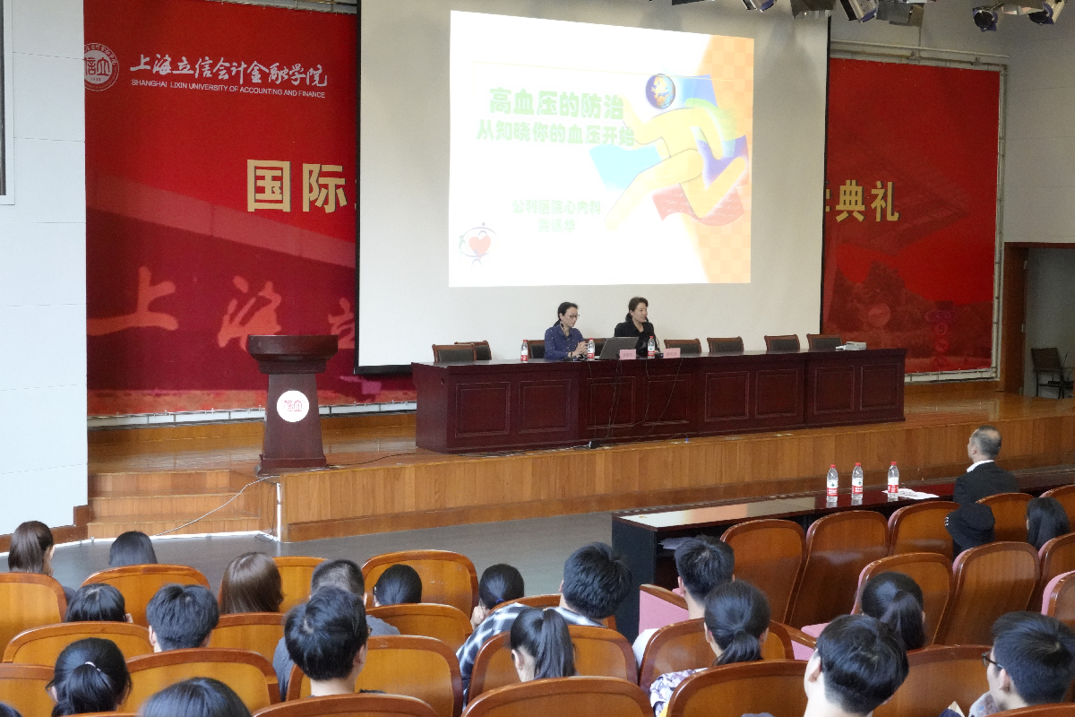 统计与数学学院于10月9日下午在浦东校区赵朱木兰报告厅开展健康教育讲座。本次讲座特邀上海市浦东新区公利医院心血管内科主任龚佩华、内分泌科主任顾明君作为主讲人。本次讲座由统计与数学学院红十字会第六分会主办,共计250余名学生参加。