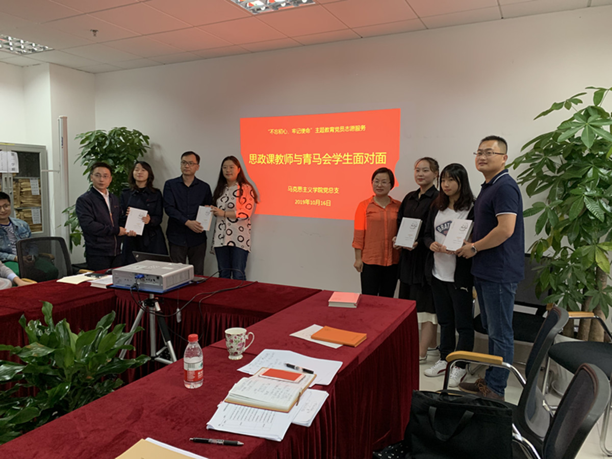10月17日下午,“不忘初心、牢记使命”主题教育党员志愿服务——思政课教师与青马会学生面对面在浦东校区举行。马克思主义学院部分党员、学校青年马克思主义研究会部分学生参加,会议由学院党总支书记王妍主持。