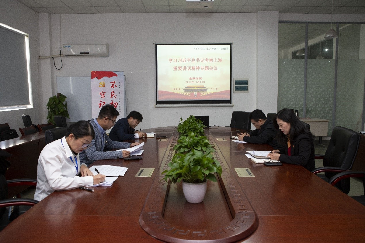 会上,白涛作为导学人,带领班子成员集体学习了习近平总书记考察上海重要讲话精神。习近平总书记对上海的期望与嘱托,为上海未来发展领航定位、指明方向,让干部群众干事创业充满干劲。金融学院班子成员分别谈了自己的认识体会。大家表示要在习近平总书记重要讲话精神的指引下,勇挑重担,不断树牢“四个意识”,坚定“四个自信”,做到“两个维护”,围绕习近平总书记交给上海的三项新的重大任务和五个方面的工作要求,确保落实到位,为金融教育事业贡献自己的力量。