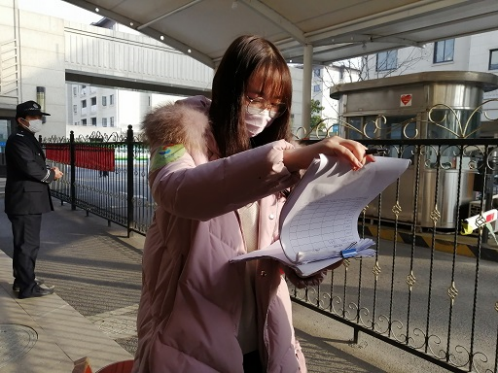 来自18级财政三班朱逸琦同学参与了当地团区委组织的志愿活动。她的主要工作是协助门卫检查、办理出入证。在“3·8”妇女节的当天,当地居委会干部买来玫瑰花,为与她一同在岗的所有女性防疫志愿者们庆祝这一特殊的节日。她说,在志愿者的大家庭中,每一位志愿者心中都有一个坚定的信念,在共同努力下,终将渡过难关。