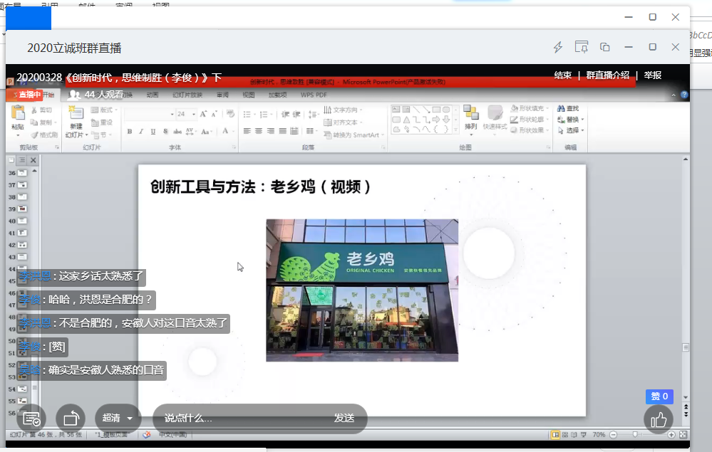 为确保教学质量,教务处实践教学部主任、副处长应小陆和实验班班主任马飞等老师结合“立诚”创新创业实验班的培养方案,紧紧围绕学生创业需求的知识点,与相关导师进行了多次沟通,并根据不同导师的需求,在教学中灵活运用钉钉、腾讯会议、小鹅通以及微信等多种工具进行在线教学。从第一天完成的几门课程来看,同学们积极参与,反响热烈,取得了很好的教学效果。