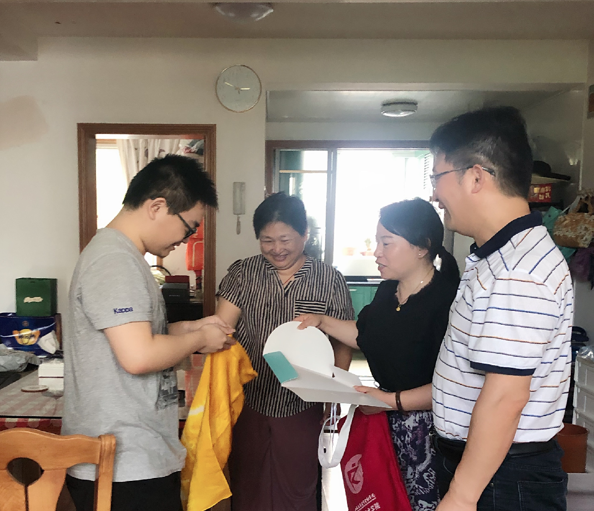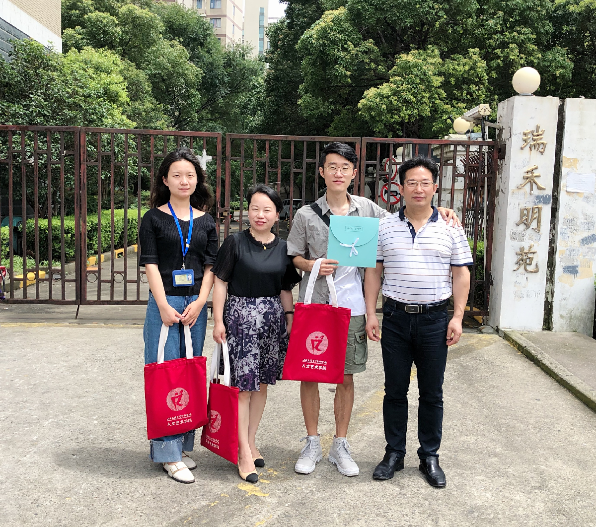 7月10日,人文艺术学院党总支书记黄敏,党总支副书记、副院长陈嵩莉,辅导员叶婷婷对2020届在沪毕业生开展暑期家访,为毕业生们送上学院老师们亲手扎染的丝巾,以及对他们未来的美好祝福。