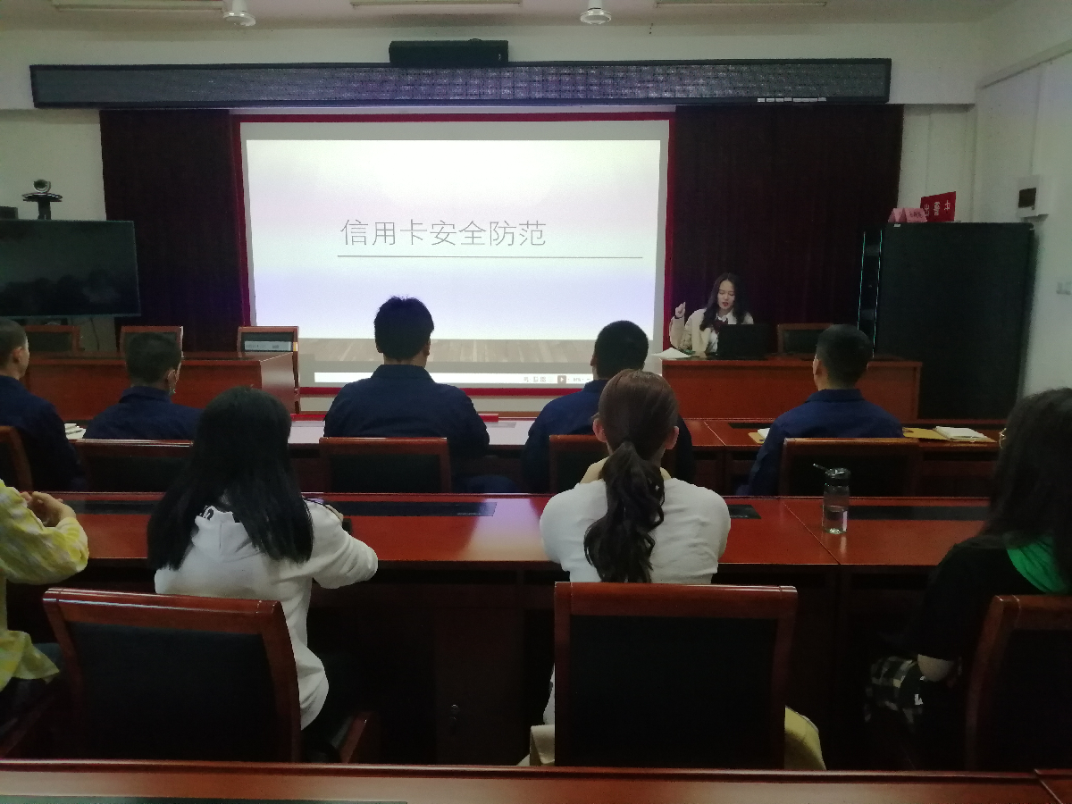 李祉祺就信用卡的使用安全为大家进行了全方位介绍。她为大家讲解了信用卡的含义,并从银行积累信用、满足日常消费、积分作用及兑换、各家信用卡打折优惠四个方面指出了信用卡的特点以及优势,让大家对信用卡有了一个更深层次的认知。针对“信用卡使用风险——信用卡诈骗”这一方面,李祉祺分别从使用伪造、作废信用卡进行诈骗等物品阐述了层出不穷的信用卡诈骗方式,并援引真实案例提醒大家提高警惕,注意信用卡安全。李祉祺提醒大家在使用信用卡时要注意理财、理性消费、规避风险,注意个人信用的管理、正确使用信用卡,让信用卡为生活带来更多便利。讲解结束后,消防指战员们为同学们介绍了消防器材的正确使用方法,并展示了他们的日常训练科目,让同学们增加了消防知识的同时,也对火场逆行的英雄们肃然起敬。