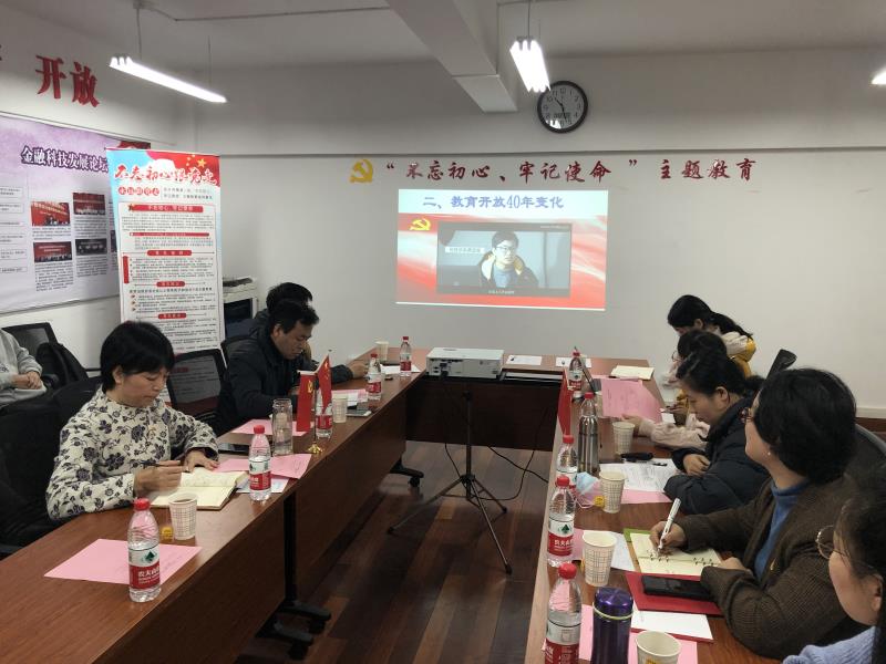 活动分为改革开放四十年历程、政治生日:“金融改革与我”、金融改革四十年知识竞赛等环节。金融科技学院党总支(筹)副书记(主持党务工作)褚红素从中央银行体制建立、银行企业化改革、资本市场改革、金融监管体制改革、金融对外开放等方面,向大家介绍了中国金融改革开放四十年的光辉历程。支部书记王江盼、组织委员朱亚楠也分别以视频讲解的方式,从改革开放四十年发展历程、浦东改革开放三十年、教育改革开放四十年等角度阐释了改革开放以来我国取得的巨大成就。